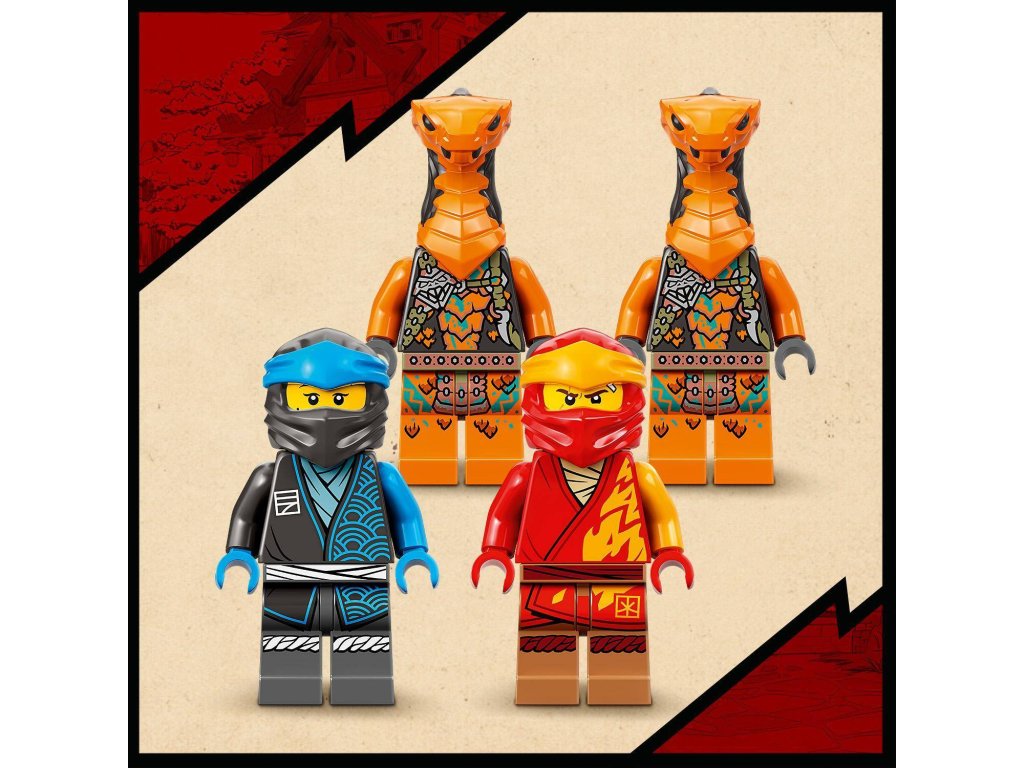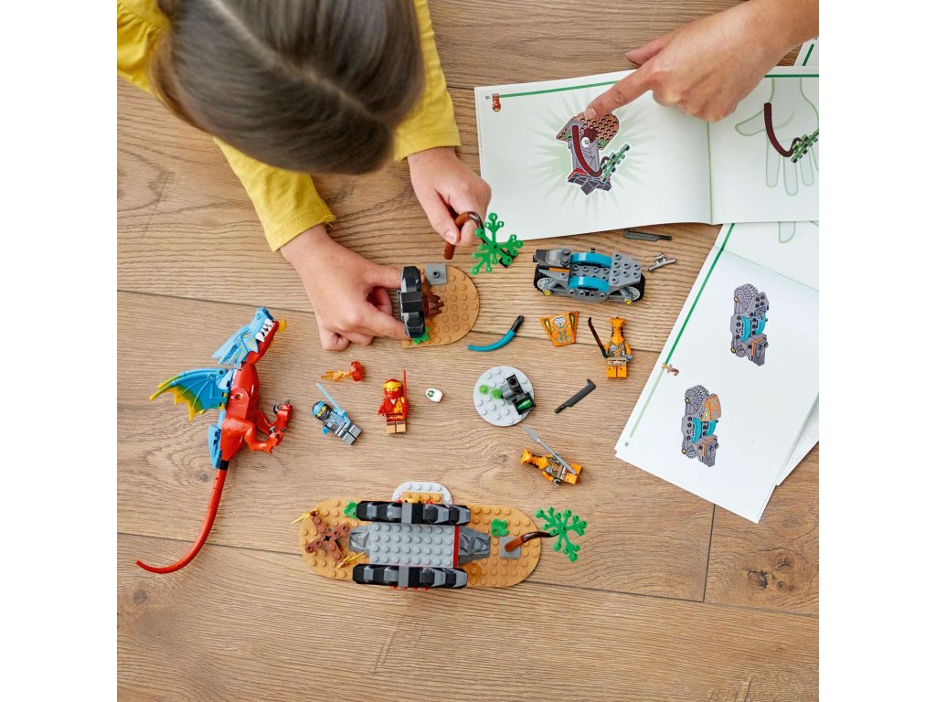 Tato nindžovská stavebnice je speciálně navržena tak, aby dětem od 4 let poskytla skvělý stavitelský a herní zážitek. V krabici najdou sáčky, z nichž každý obsahuje kostky k sestavení jednoho z modelů a jedné postavy. Děti tak snadno vytvoří vše, co potřebují pro přehrávání akčních příběhů. Pomůže jim také kostka pro začátečníky, která jim dá základ a pomůže jim rychleji sestavit draka.
