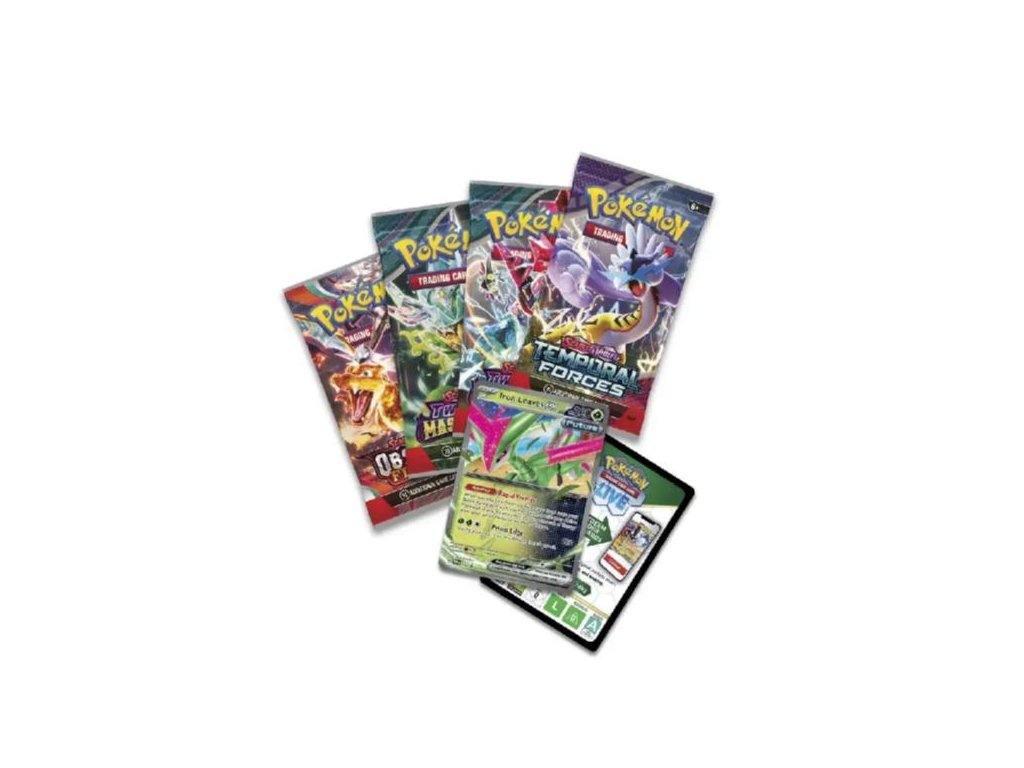 Ponořte se do oblak a prozkoumejte zemi, která se zdá být nespoutaná časem! Díky zuřivým útokům se Ancient Pokémon jako ex Roaring Moon a Sandy Shocks ex objevují vedle umělých budoucích Pokémonů, jako jsou ex Iron Valiant a Iron Hands. Mezitím se Garchomp ex, Mewtwo ex a další Terastalizují, aby získali nové typy, protože ex Armarouge, Gholdengo ex a další Pokémon ex se připojují k boji. Dobrodružství čeká, jak se časové osy střetnou v rozšíření Pokémon TCG: Scarlet & Violet—Paradox Rift!