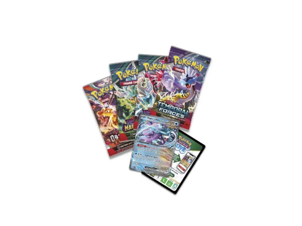 Ponořte se do oblak a prozkoumejte zemi, která se zdá být nespoutaná časem! Díky zuřivým útokům se Ancient Pokémon jako ex Roaring Moon a Sandy Shocks ex objevují vedle umělých budoucích Pokémonů, jako jsou ex Iron Valiant a Iron Hands. Mezitím se Garchomp ex, Mewtwo ex a další Terastalizují, aby získali nové typy, protože ex Armarouge, Gholdengo ex a další Pokémon ex se připojují k boji. Dobrodružství čeká, jak se časové osy střetnou v rozšíření Pokémon TCG: Scarlet & Violet—Paradox Rift!