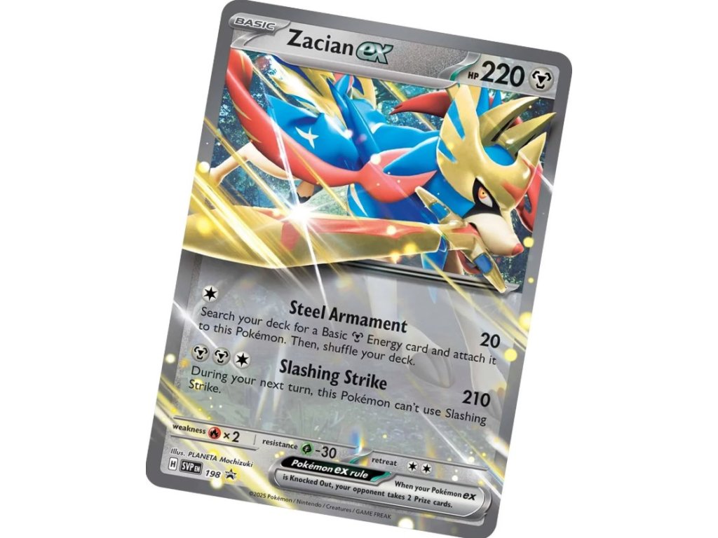 Zacian ex dostává své vlastní sběratelské balení hry Pokémon TCG v edici Slashing Legends. V krásném kovovém obalu na karty naleznete foilovou promo kartu a 4 boostery