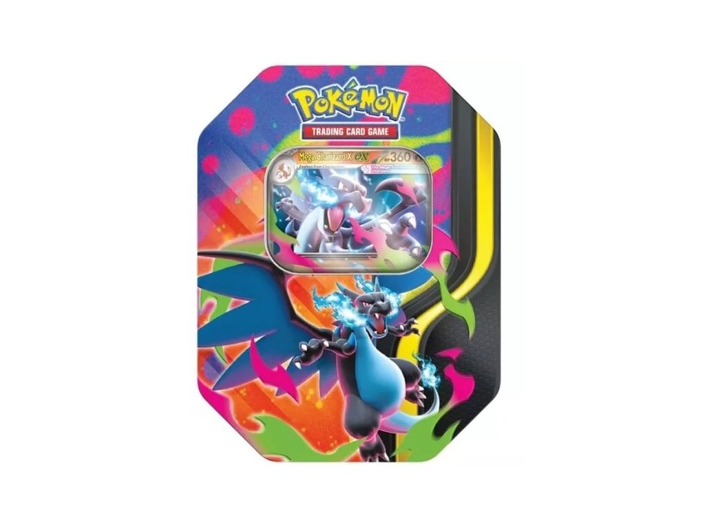 Jedná se o plechovku standardní velikosti, v které najdete čtyři balíčky Pokémon karet a jednu foilovou promo kartu Mega Charizard X ex