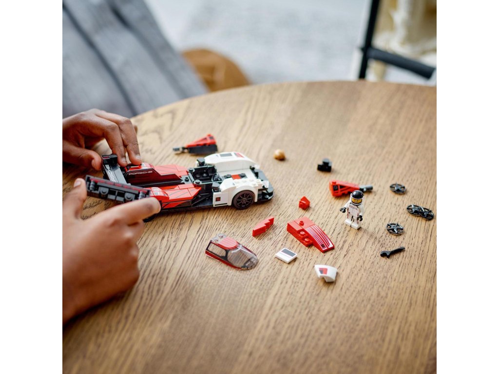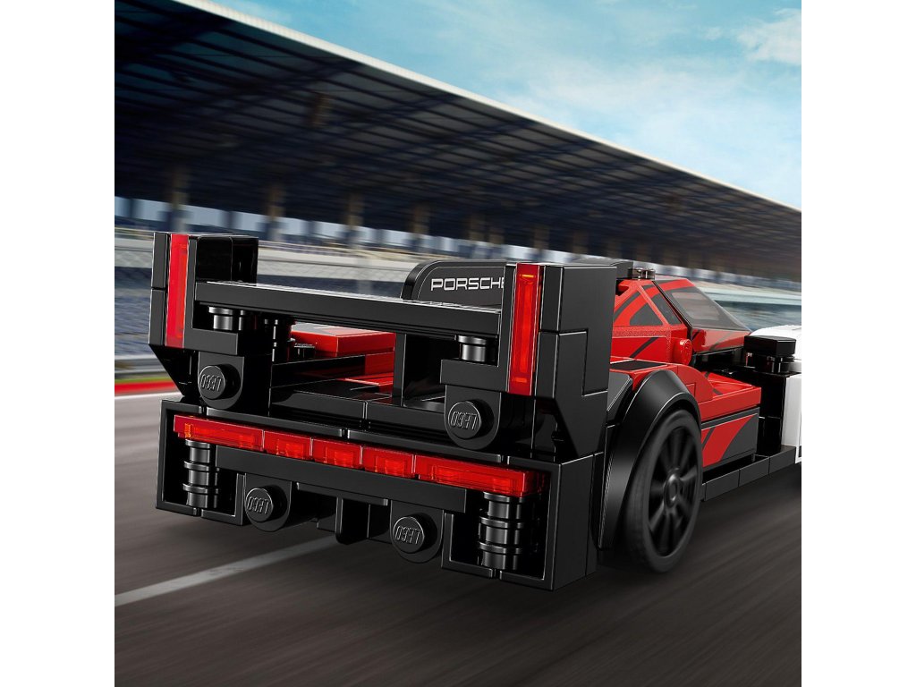 Tato miniaturní verze vozu Porsche 963 Le Mans Daytona Hybrid se pyšní autentickými detaily z původního modelu: nechybí kombinace červené, černé a bílé barvy inspirovaná závodními auty Porsche z 80. let, výrazné podběhy kol, nízká kapota, zadní křídlo a zadní ploutev. Součástí stavebnice je také minifigurka řidiče, kterou lze umístit do kokpitu a vydat se s ní závodit na okruh!
