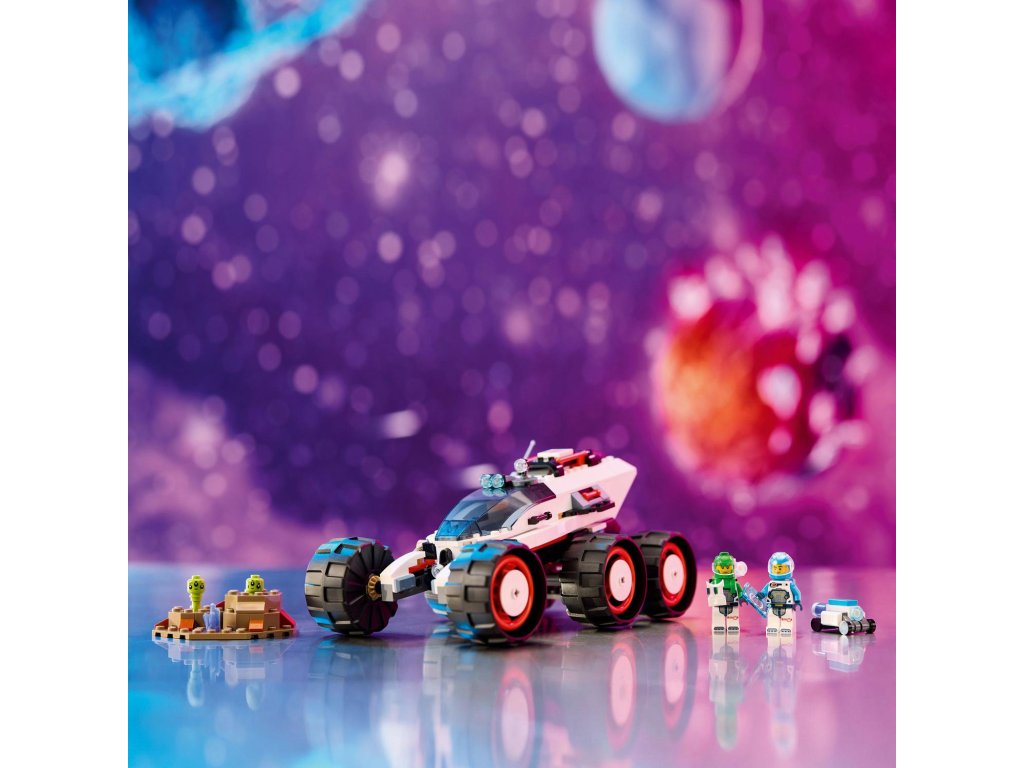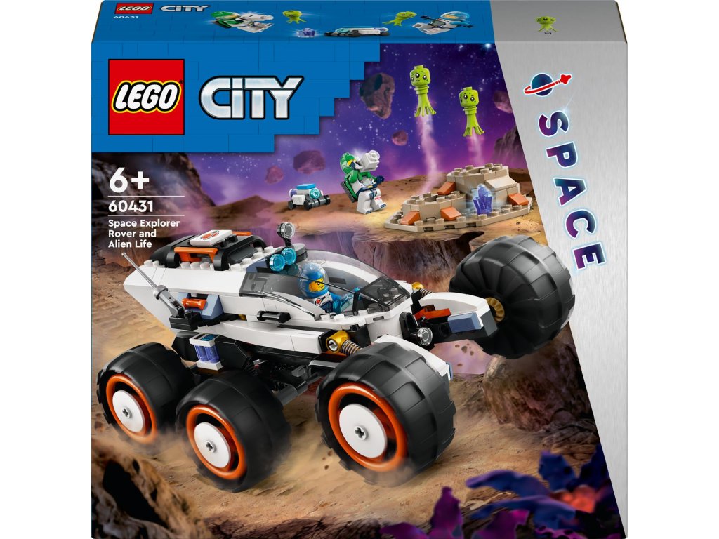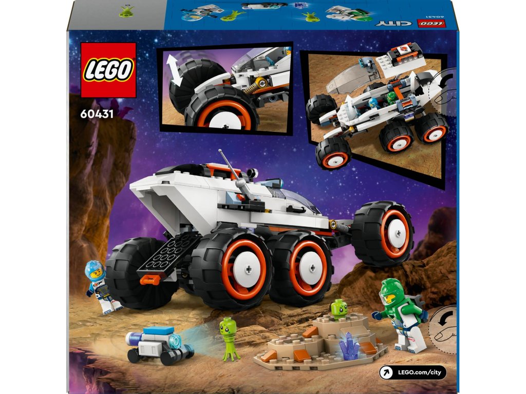 S touto stavebnicí 60431 LEGO® City Průzkumné vesmírné vozidlo a mimozemský život se mohou děti od 6 let pustit do projíždění nových světů. Odolné vozidlo pro průzkum vesmíru je vybaveno 6 velkými pneumatikami a pokročilým odpružením pro jízdu po kamenitém terénu planety. Děti se mohou připojit k posádce, která mapuje povrch planety a objevuje podivné gejzíry tryskající páru a mimozemský život. Součástí této zábavné stavebnice jsou 2 minifigurky vesmírné posádky, robot a figurky mimozemšťanů.